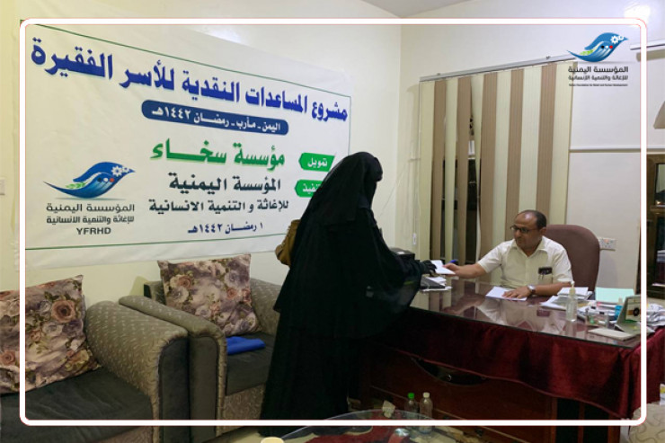 وقد تم توزيع المساعدات النقدية طوال أيام شهر رمضان المبارك ، وقد تم تغطية محافظة مأرب ومحافظة تعز ومحافظة شبوة .